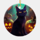 Halloween Tuxedo Cat With Pumpkins Scary Ceramic Tree Decoration