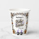 Add a magical touch to your twin baby shower with this Halloween-themed paper cup. The design features a vintage-inspired pregnant witch in a starry gown holding two bubbling cauldrons with purple smoke, symbolising the twins on the way. Surrounded by pumpkins, bats, and ornate floral accents in orange, black, and gold, it perfectly blends Halloween charm with the joy of expecting. On the back, customisable text allows you to personalise with the mum-to-be’s name and event date. A festive and unique party essential for an unforgettable autumn twin baby shower.