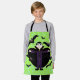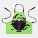 This cute Halloween themed apron features a scary vampire weaning purple with a black cape and bats flying around him on a green background. Happy Halloween!