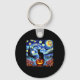 Halloween Van Gogh Starry Night Black Cat Pumpkins Key Ring