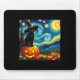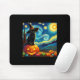 Halloween Van Gogh Starry Night Black Cat Witch Ha Mouse Mat