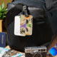 Halloween vintage pattern luggage tag that includes knife, witch, and bats to add to your Halloween travel accessories collection.