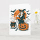 Halloween Vintage Witch on Pumpkin Bats Cauldron Card