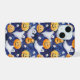 This design features a whimsical and festive Halloween-themed watercolor pattern. The design includes a dark, starry night sky as the background, which sets the stage for a collection of friendly ghosts and cheerful jack-o'-lanterns. The ghosts are painted in soft whites with various cute expressions, floating playfully around the scene. The pumpkins are bright orange, with carved faces ranging from happy to mischievous. Small white skulls are scattered throughout, adding to the Halloween ambiance. The overall pattern is fun and lighthearted, perfect for celebrating the spooky season in a cute and charming way.