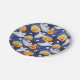 This design features a whimsical and festive Halloween-themed watercolor pattern. The design includes a dark, starry night sky as the background, which sets the stage for a collection of friendly ghosts and cheerful jack-o'-lanterns. The ghosts are painted in soft whites with various cute expressions, floating playfully around the scene. The pumpkins are bright orange, with carved faces ranging from happy to mischievous. Small white skulls are scattered throughout, adding to the Halloween ambiance. The overall pattern is fun and lighthearted, perfect for celebrating the spooky season in a cute and charming way.