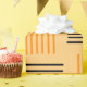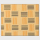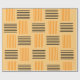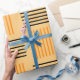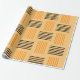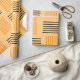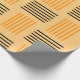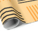 This Halloween wrapping paper has a mid-century modern design that looks like a weave with orange and black lines on a field of pale orange.