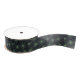 Grosgrain ribbon is shown in a Halloween spider webs print.