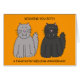 Two cartoon fluffy kittens with fangs, one black and one grey. The image has an orange colored background and is accompanied by the words 'Wishing you both a fangtastic wedding anniversary'.