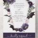 Halloween October 31st Autumn Fall Dark Watercolor Purple and Green Wedding Invitations on Black background - includes haunting and scary elegant script typography with modern Flowers and Bat Wings for the special Creepy Wedding day celebration.