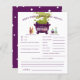 Cute halloween theme baby shower baby predictions and advice card featuring an illustration of purple witch's cauldron fuming green smoke with candles and potions. The texts are editable. Perfect game to play during the shower and will definitely be a great keepsake! The card asks guests to predict what the baby would look like.