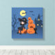 Halloween Witch, Black Cat, and Pumpkins Canvas Print