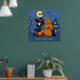 Halloween Witch, Black Cat, and Pumpkins Poster