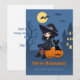 Halloween Witch, Black Cat, Curved Pumpkins Family Holiday Card
