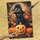 Transform your crafts with our bewitching Halloween decoupage paper! Featuring a charming black cat a witch hat amidst vibrant fall leaves. Add enchantment to your projects today!