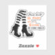 This Halloween contour sticker features a pair of black and white striped witch legs adorned with pointed high heels that curl at the toes. This whimsical design captures the essence of classic witch iconography with a modern twist. Next to the legs, a playful phrase reads “Never doubt the power of a woman in high heels.” The text is a combination of black and orange script and print text. This adds to the fun and slightly eerie vibe, perfect for the Halloween season.