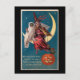 Halloween Witch on Moon with Owl Vintage Postcard