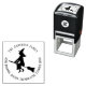 Add a touch of Halloween spooky fun to your mail with our family return address stamp featuring a flying witch on a broomstick. Designed with circle text typography and a whimsical witches silhouette illustration, this seasonal stamp blends funny charm with a fall autumn style. Easily create your own personalised design for a unique and creative finishing touch. Perfect for adding festive flair to your Halloween correspondence!
