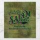 Salem Broom Company sign in black, green and purple glow and featuring a gothic green patterned background.