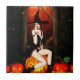 This design features A Halloween witch sitting on a pumpkin and surrounded by a eerie orange and black backdrop. Great gift for Halloween!