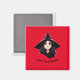 The design shows an illustration of young witch with black hair and a black pointed hat, together with the words "Happy Halloween!" The design is based on a digital illustration.