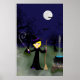 Goldie the Good witch is twirling her wand and conjuring up fun in her cauldron near a graveyard under a full moon and bats flying around!