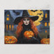 Halloween Witch with Jack O'Lantern Illustration Holiday Postcard