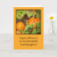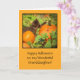 Happy Halloween to your wonderful granddaughter! This is an adorable card featuring a sweet kitten in a pumpkin patch. You can customise the front to include a name or different relationships. Sending "Paws-it-tively" fun Halloween wishes is such a cute idea!