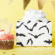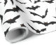 Gift wrapping paper is shown in a Halloween bats print.