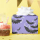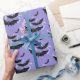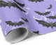 Halloween wrapping paper is shown in a black bats print.