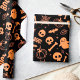Cute kids halloween wrapping paper in a orange and black pattern.