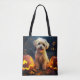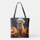 Halloween Yorkipoo With Pumpkins Scary Tote Bag