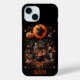 A magical Halloween design featuring a floating ghost, a haunted house, a boiling cauldron, lit candles, a black cat, and mysterious elements with exquisite artistic details. Perfect for horror lovers 🎃👻