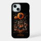 A magical Halloween design featuring a floating ghost, a haunted house, a boiling cauldron, lit candles, a black cat, and mysterious elements with exquisite artistic details. Perfect for horror lovers 🎃👻