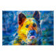 This art print showcases a stunning abstract portrait of a dog, bursting with vibrant colours and expressive brushstrokes. The blend of rich blues, yellows, and oranges creates a dynamic and eye-catching design that celebrates the beauty of man's best friend. Perfect for dog lovers and fans of modern, colourful decor, this piece adds warmth and personality to any space. An ideal gift for animal enthusiasts or a bold statement piece for your wall.