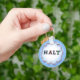 Kaychain with the letters HALT on a white and blue background with frame. You can customise this by adding your own text. The letters are a reminder of excellent principles.