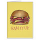 Greeting card features an original marker illustration of a ham and cheese sandwich, with HAM IT UP in a fun font.