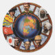 Vintage Hamburg America Line poster featuring a ship's wheel, world route map, mulit-cultural portraits and national flags for countries served on their 1905 world cruise