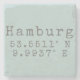 Hamburg Germany longitude and latitude coordinates in distressed fonts give this a modern urban look