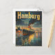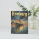 Set sail for adventure with our travel ad design capturing the maritime majesty of Hamburg's bustling harbour. Immerse yourself in the grandeur of colossal ships, where the echoes of seagulls and the gentle lapping of waves create a symphony of nautical delight. This postcard invites you to experience the vibrant energy and rich maritime history that define Hamburg's iconic harbour.