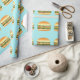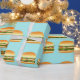 Hamburger Cartoon Illustrated Pattern On Blue Wrapping Paper