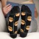 Destei's pattern of illustrated hamburgers that have sesame seed buns filled with cheese, lettuce, beef, tomato, ketchup and pickles. The background colour is black. Feel free to change it to any other colour, if you wish.