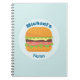 A personalised spiral notebook with an illustration of a simple hamburger. Lettuce tomato and beef patty. Simple and delicious.