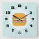 Hamburger Illustration with Tomato and Lettuce Square Wall Clock