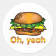Hamburger lovers will enjoy this delicious looking burger with the words - Oh, yeah.