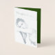 HAMbyWhiteGlove aka HAMbWG - woman sitting backwards on a chair and resting her head on her arms, with the words "thoughts of you" across the top. The inside says 'lead to thoughts of us". The background is lavender, but you can choose any colour by choosing the customise option. Shown in silver foil with a forest green inside.