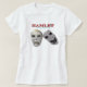 For theatre buffs. Shakespeare’s Hamlet title in bright red with drama masks below. One mask overlays a skull with grinning teeth and an eye.