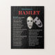 For lovers of Shakespeare’s tragic Prince Hamlet famous pondering on the nature of death, the soliloquy, To be or not to be, is white text on a black background with drama masks—behind one is a grinning skull with a blue eye.