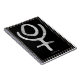 Hammered silver stylized Pluto planet symbol in a fine silver double line frame. This notebook or journal or writing pad has a title of The Journey, which can be changed to personalize your own story.