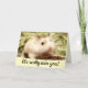 Fun and cute hamster's get well soon card! Inside message: Get well soon. It's not the same without you. Wishing you a healthy speedy recovery.