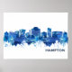 Blue Watercolor Skyline of Hampton, an independent city in the Commonwealth of Virginia in the United States